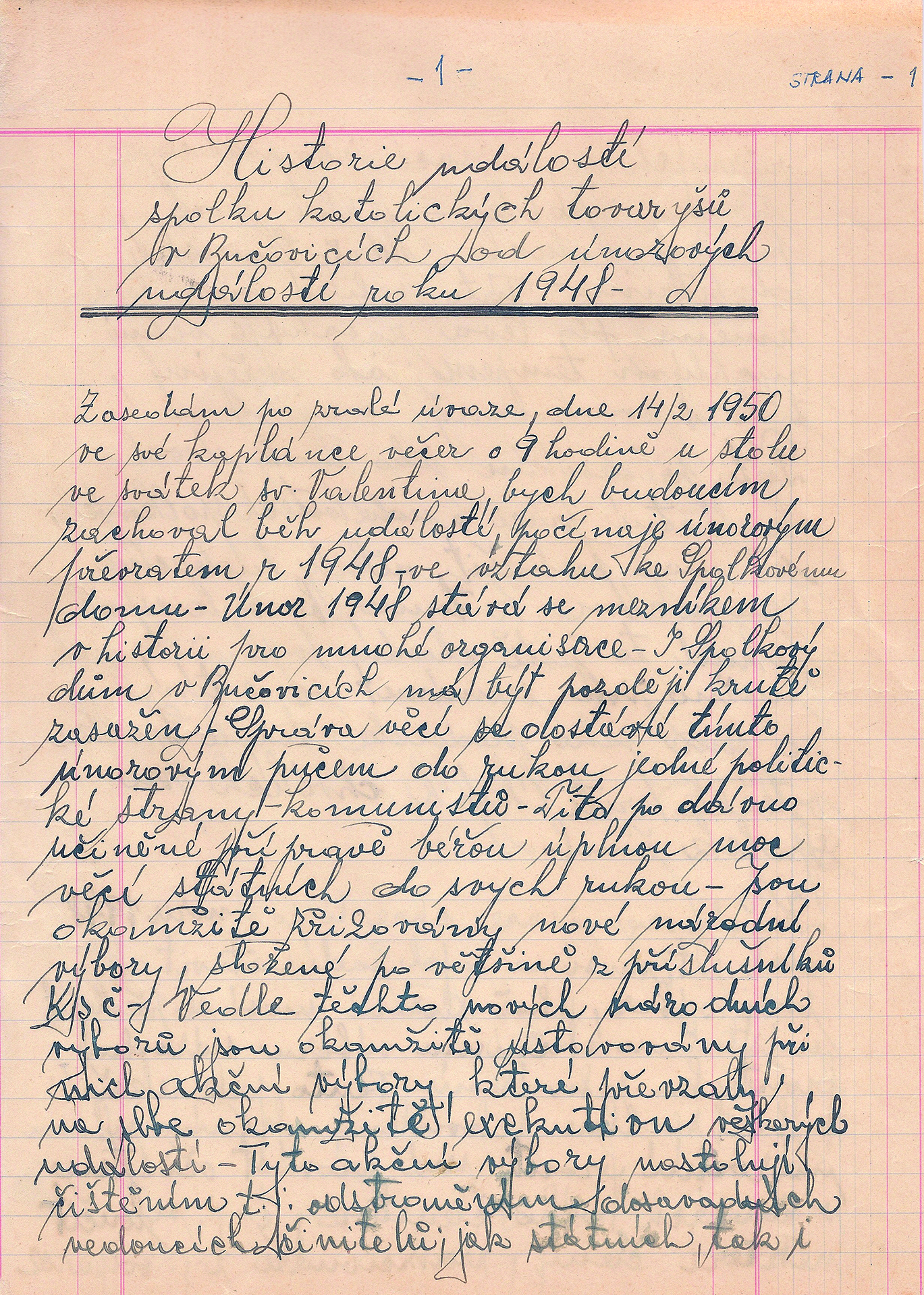1948 Po zrušení Spolku katolických tovaryšů v Bučovicích uhájil Václav Drbola alespoň divadelní spolek, který připravil na den 24. října 1948 pohádku Mlynářovic Maruška. Ta je však ještě před premiérou zakázána. „Praporčík SNB přináší mi dopis, který zasílá ONV ve Vyškově na příkaz místního akčního výboru, a v tomto dopise stojí zákaz sehrání divadla, povolení hry se tedy odvolává. Bylo mi do breku,“ popisoval ve zprávě, kterou nechal uschovat a která byla nalezena v roce 2008 uložená ve staré garnýži. Zprávu pojmenoval Historie událostí Spolku katolických tovaryšů v Bučovicích. Popisoval v ní velmi přesně také celkovou atmosféru v zemi po převratu v únoru 1948. Velkou pozornost v Bučovicích však tehdy vyvolal plakát s textem, že hra se nedovoluje hrát – plakát vyvěsil Drbola. Dne 10. prosince 1948 je úplně zastavena činnost spolku a pokus bránit se soudně končí samozřejmě neúspěchem.